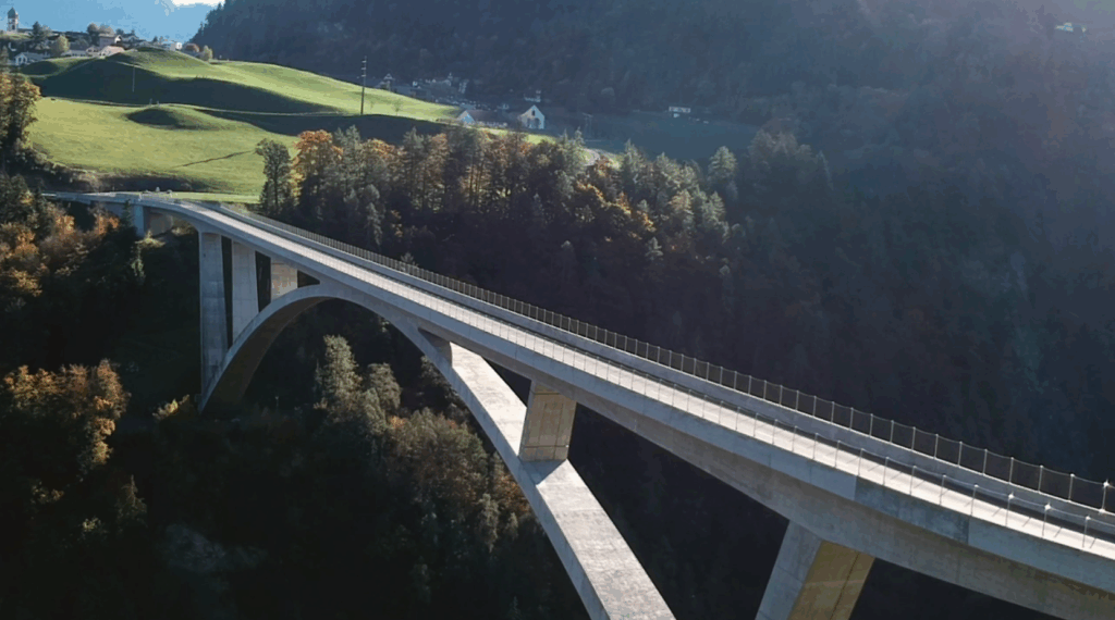 Die schwungvolle Gibelfeldbrücke wird Teil der neuen Umfahrung Cham/Hünenberg. Getragen wird sie nach Bauende von fünf Pfeilern, für welche die Debrunner Bewehrungstechnik Verankerungsplatten hergestellt hat. Die BARTEC®-Platten verkürzen zum einen die Verankerungslänge. Zum anderen gewährleisten sie die genaue Ausrichtung der Bewehrungseisen, was den Zeitaufwand für das Ausrichten deutlich reduziert.